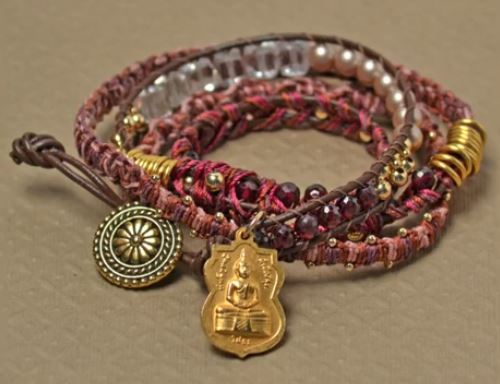 Many of us love the wrapped cord bracelet styles (see tutorials below) like the Shambala ones. But did you ever think to vary the wrapping patterns for an extra long one? No? Neither did I.