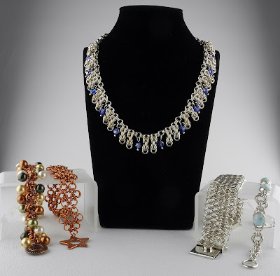 Bead Show and Sale soon. See that necklace? You may recognize my Disco Ball inspired wire work necklace, again from a previous post! It won a GRBS competition for the brochure picture.