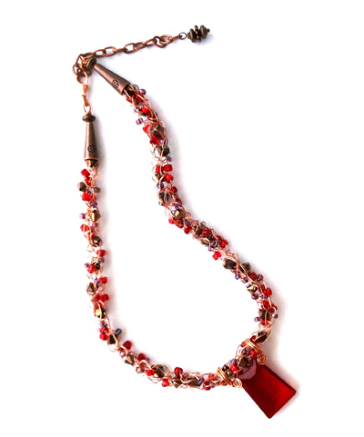 It was harder going with all silver and lighter beads like my old and slightly wonky bead soup wire wrapped pendant necklace.