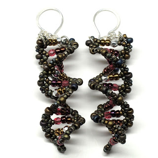Her first blog post covers the details. The closeup of the earrings above shows bugle beads representing the base pairs (rungs). So to show greater scientific accuracy,