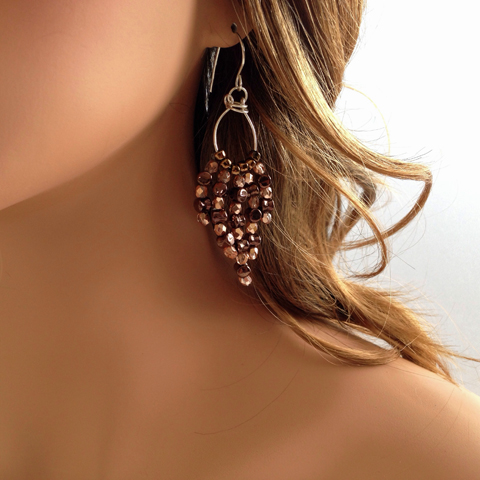 As you can see from my pellet bead fringe earrings, these beads do spin around to present different profiles. I made the wire support oval rather than round so the fringe flares out, curving in places and showcases these pellet beads.