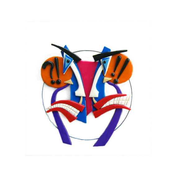 Miloš has a great eye for colors, geometric shapes and a talent for putting polymer clay, wire, glass beads and even some gemstones together in unusual ways. Maybe not for everyone but those who love quirkiness will treasure these unique pieces.