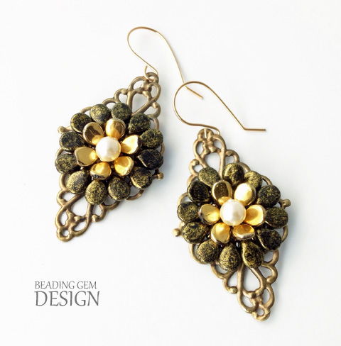 Beading was my first love and I wish I had more time to devote to it. If you are in a perpetual time crunch like me, then consider light beading projects! My Pip bead flower earring designs below are based on the idea that the stiff foundation typically used in bead embroidery could be replaced with metal filigrees! Fast beading indeed! The basic tutorial for this will appear later this week.