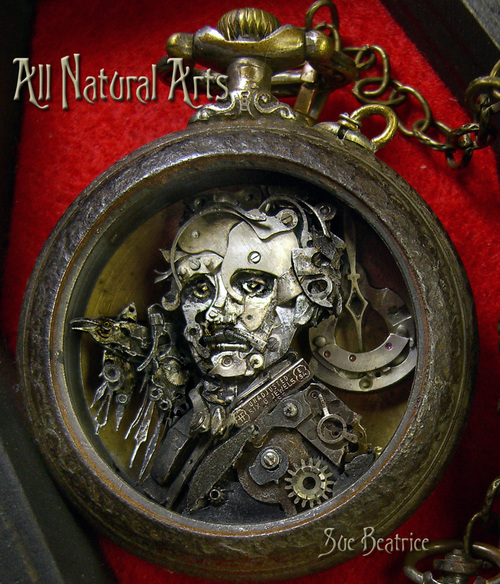 | Edgar Allan Poe Steampunk Pocket Watch Portrait |