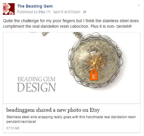 I used the Sell on Etsy app to share on social media. A neat tag is automatically added to the picture. Clicking on it takes the viewer directly to my Etsy listing. Smartphones make it so much easier to promote that I am sharing more on