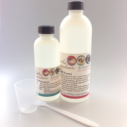 Brilliant resin uses a 2: 1 ratio of the parts. I have to remember the difference when I use other resins which are often 1:1! There is a benefit to the 2:1 as it is usually Part B which goes off with time. Little Windows also sells Part B separately for those who do not use resin a lot and need to replace the yellowed part. Note : You can color the resin if you find the cured resin is yellowish but there will be a point with old resin when the combined parts will fail to cure.
