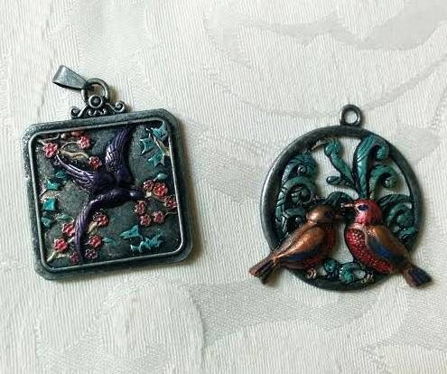 I've only ever used Gilder's Paste to color metal. Then my friend and reader, Aims sent me some pictures of her gorgeous pendants which she had colored with Swellegant. She painted the Swellegant colors onto metal pendants and charms as shown in her carefully photographed examples. Thanks, Aims for sharing them!