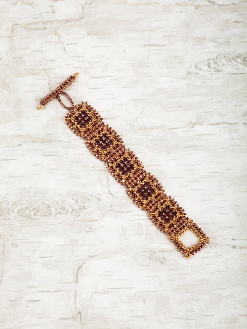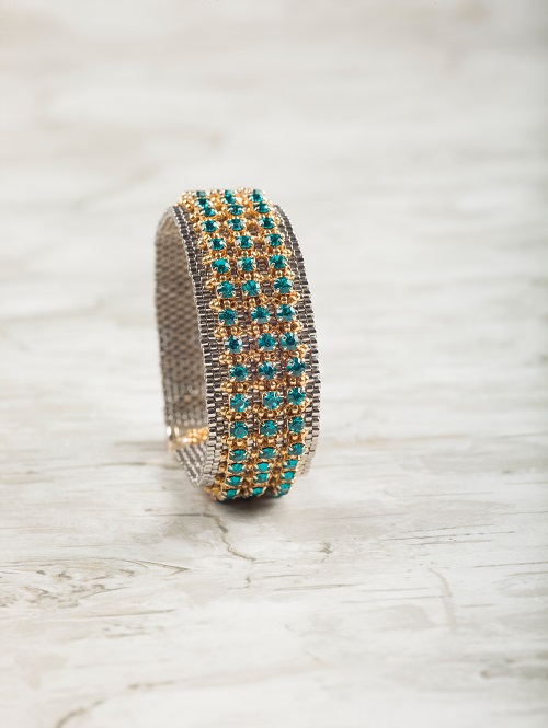 Mixed Metal Cuff one shown below. An outstanding design which deserved its name. You have to look carefully to realize that it is not a hammered and embellished metallic cuff but one constructed from just seed beads!