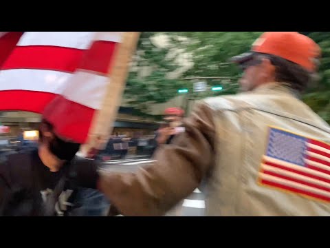 Journalist Andy Ngô reported Sunday that a mob had knocked a man unconscious, then kicked him as he lay bleeding in the street, after he tried to help another man who had been assaulted after bringing the U.S. flag to a Portland protest.