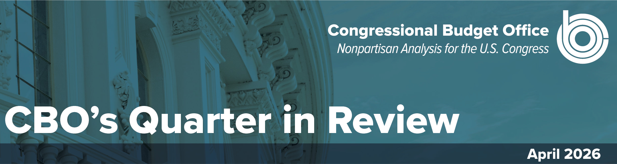 Cost Estimates Through its technical assistance and cost estimates, CBO routinely provides the Congress with information about the effects of proposed legislation on the federal budget. The agency is required by law to prepare a cost estimate for nearly every bill that is approved by a full Congressional committee of the House of Representatives or the Senate. The agency publishes cost estimates at other stages of the legislative process, too, if requested to do so by a relevant committee or by Congressional leadership. Also, CBO estimates the budgetary effects of bills scheduled to be considered under suspension of the rules in the House, a procedure sometimes used to consider legislation on the House floor in an expedited manner. This past quarter, the agency published 263 cost estimates, including the following: |